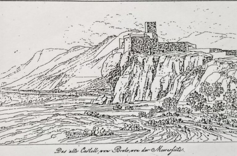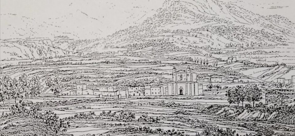 Un disegno di Carl Grass, un famoso artista e scrittore del tempo, mostra il paese e la chiesa al tempo della sua costruzione.