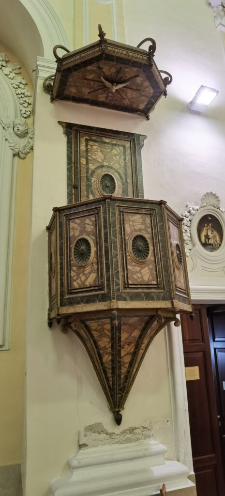 Altre opere di pregio artistico presenti all’interno della Chiesa sono la vara della Madonna Annunziata, la “Sedia Gestatoria”, dell’Ottocento, presente ancora all’altare, che svolge la funzione di sede presidenziale per il Parroco e il “Pulpito”, che si trova fra il Crocifisso e la porta che dà accesso all’Ufficio parrocchiale. Si trova a circa due metri e mezzo di altezza dal suolo calpestabile dell’edificio e fino a poco tempo fa vi si poteva accedere dall’appartamento destinato al sacerdote. Per ovvi motivi di praticità adesso funge unicamente da elemento artistico caratteristico della navata.