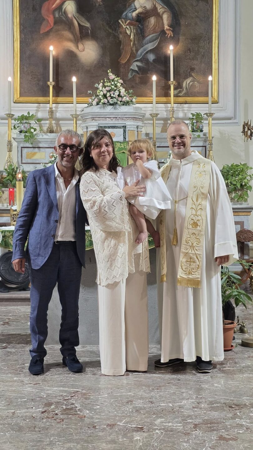 Battesimo di Giulia Giannitto Pubblicato il 7 Settembre 202519 Settembre 2025da Parrocchia Giulia è figlia di Sebastiano Giannitto e Dora Manfredi Gigliotti. 7 settembre 2025