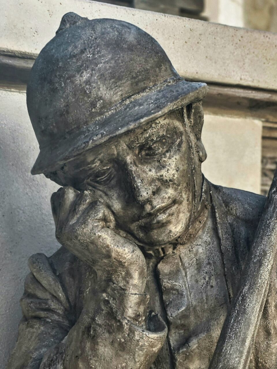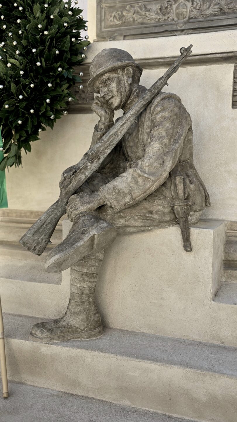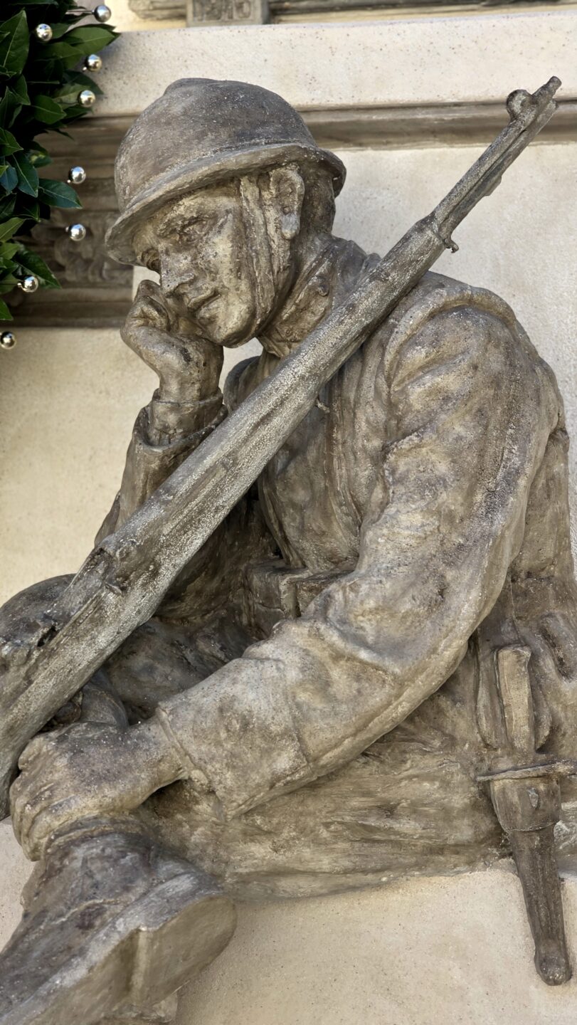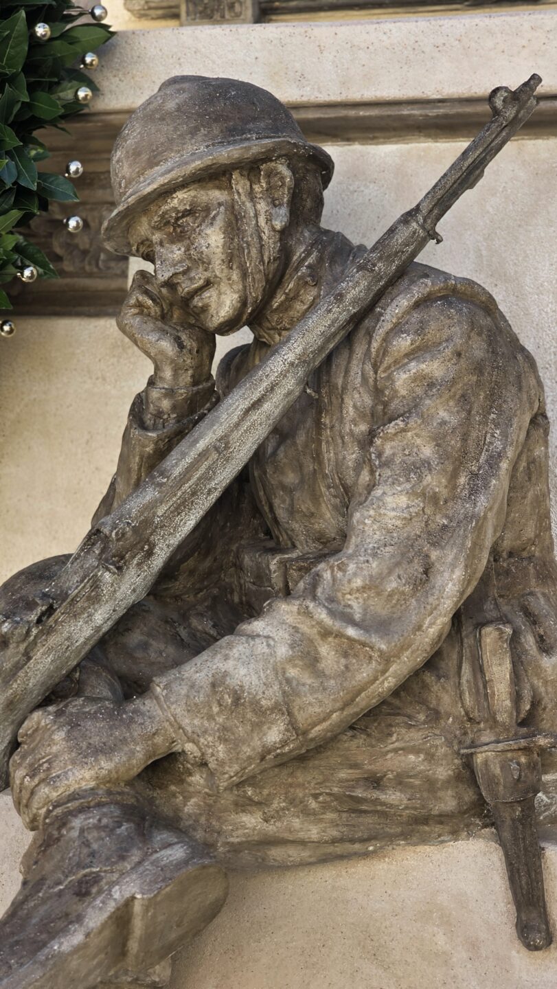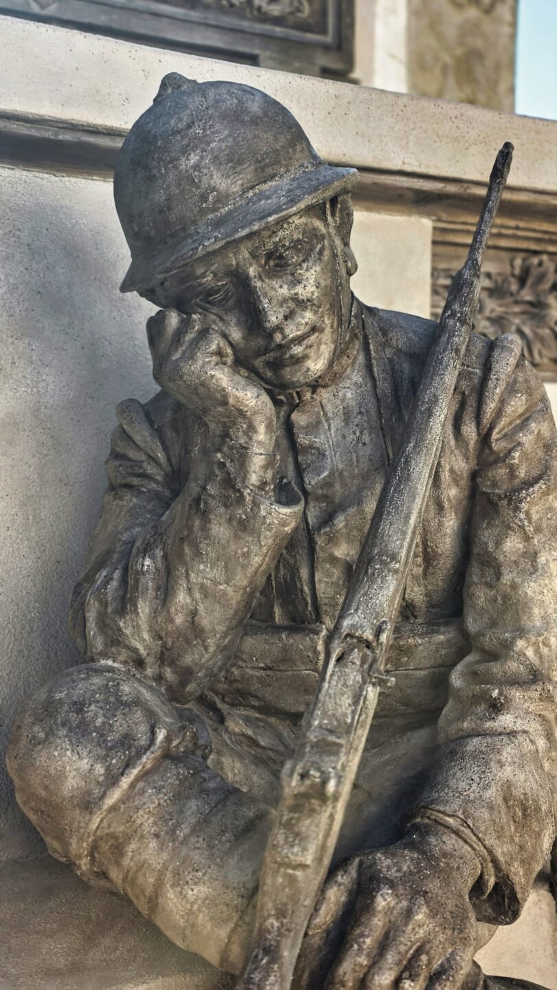 Colpisce l’immagine del soldato, rappresentato in una posizione inusuale. Il suo volto sembra parlare. Esprime tutto il dramma inimmaginabile della guerra… Monitor per la generazione presenti e future.