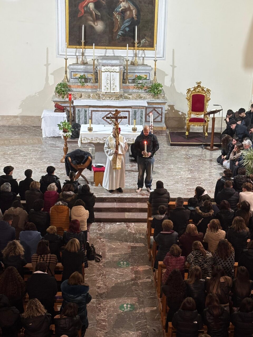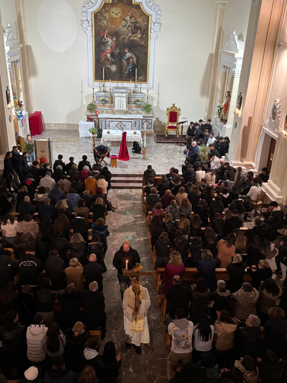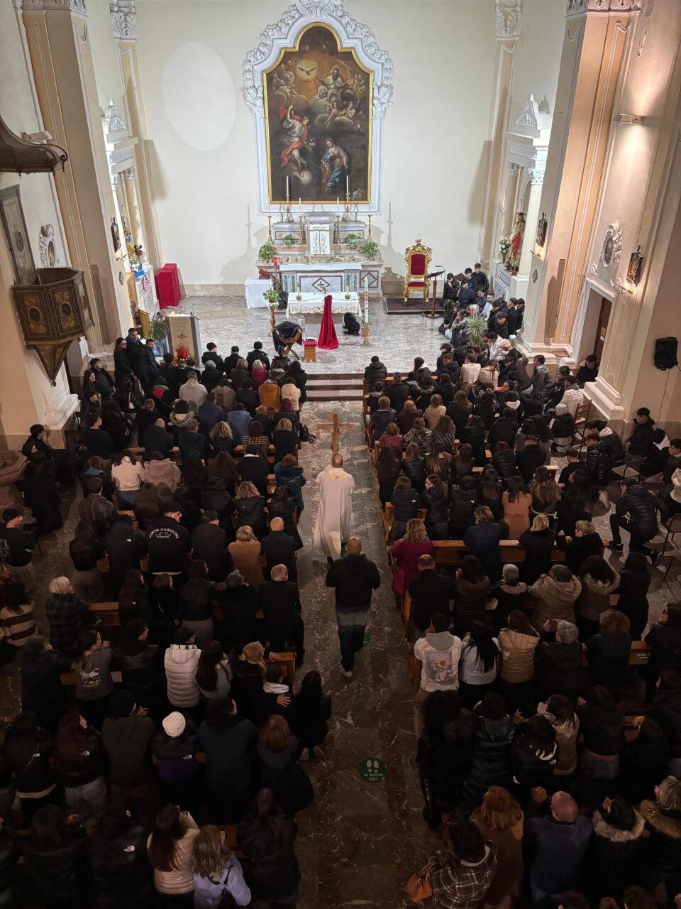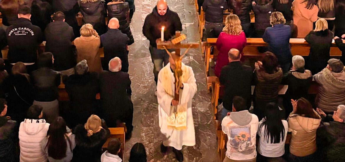 Il gesto più significativo della veglia è stato il momento in cui Cristian ha voluto accompagnare padre Enzo nella processione del crocifisso in chiesa, con un mano una candela accesa al cero pasquale, a indicare la fede nella risurrezione di Cristo la speranza di quella dei nostri defunti.